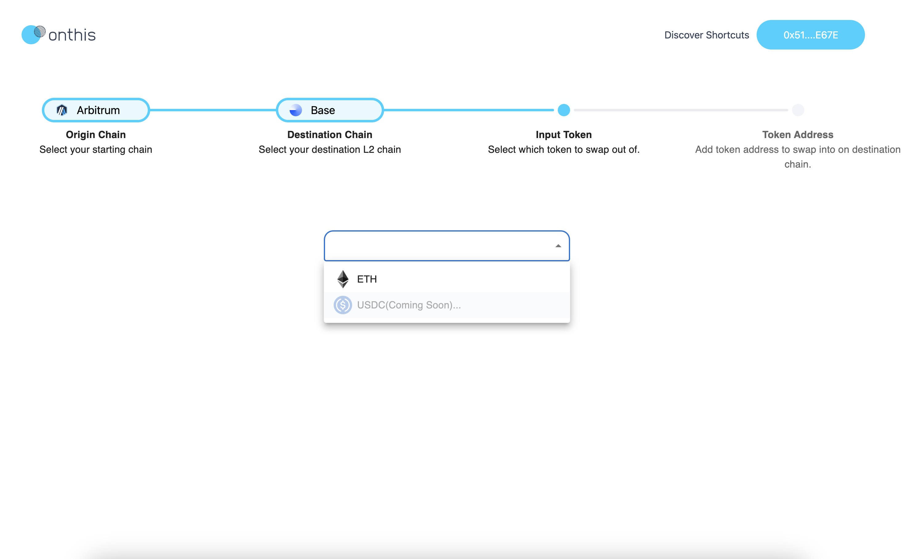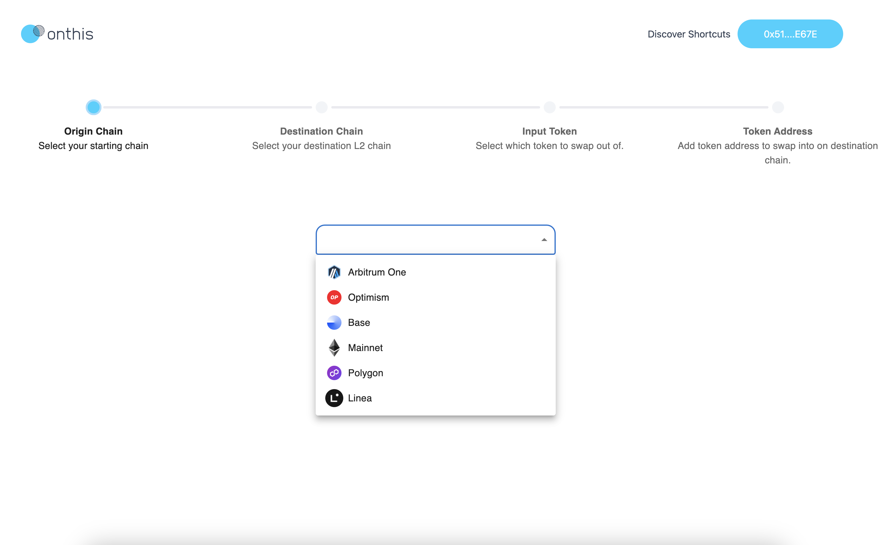 1. Visit [Builder Tool](https://create.onthis.xyz/), connect your wallet & select "Create" next to bridge + swap.